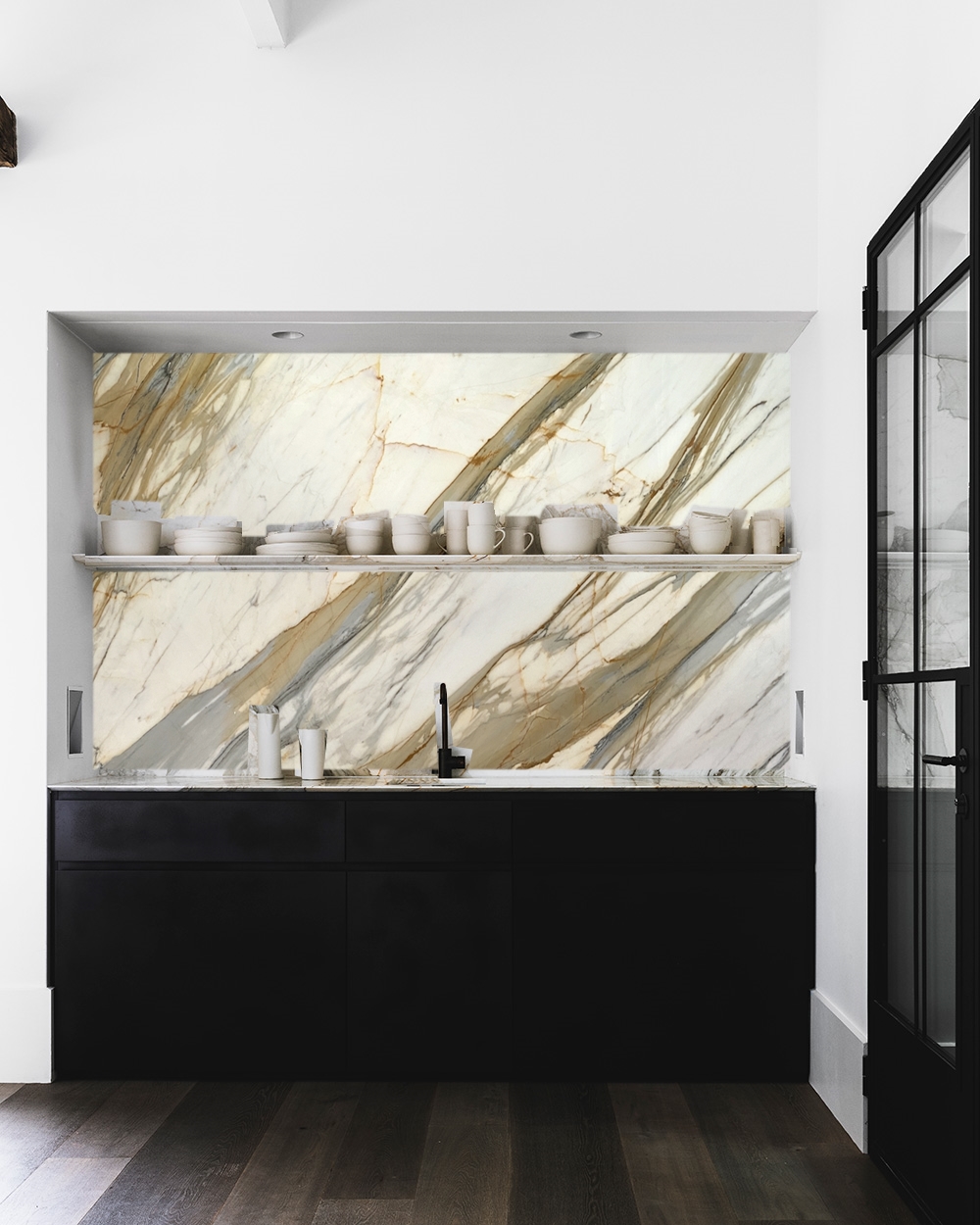 Finish Lot # Thickness Dimensions Honed 2603 2 CM 140″ x 80″ Elegantly dramatic Bianco Lasa marble featuring a sweeping vein of charcoal and flowing streams of soft gold and silver-grey against a pristine white honed background.
