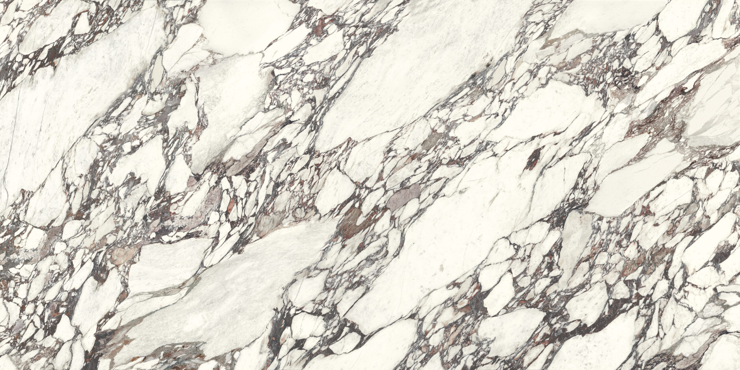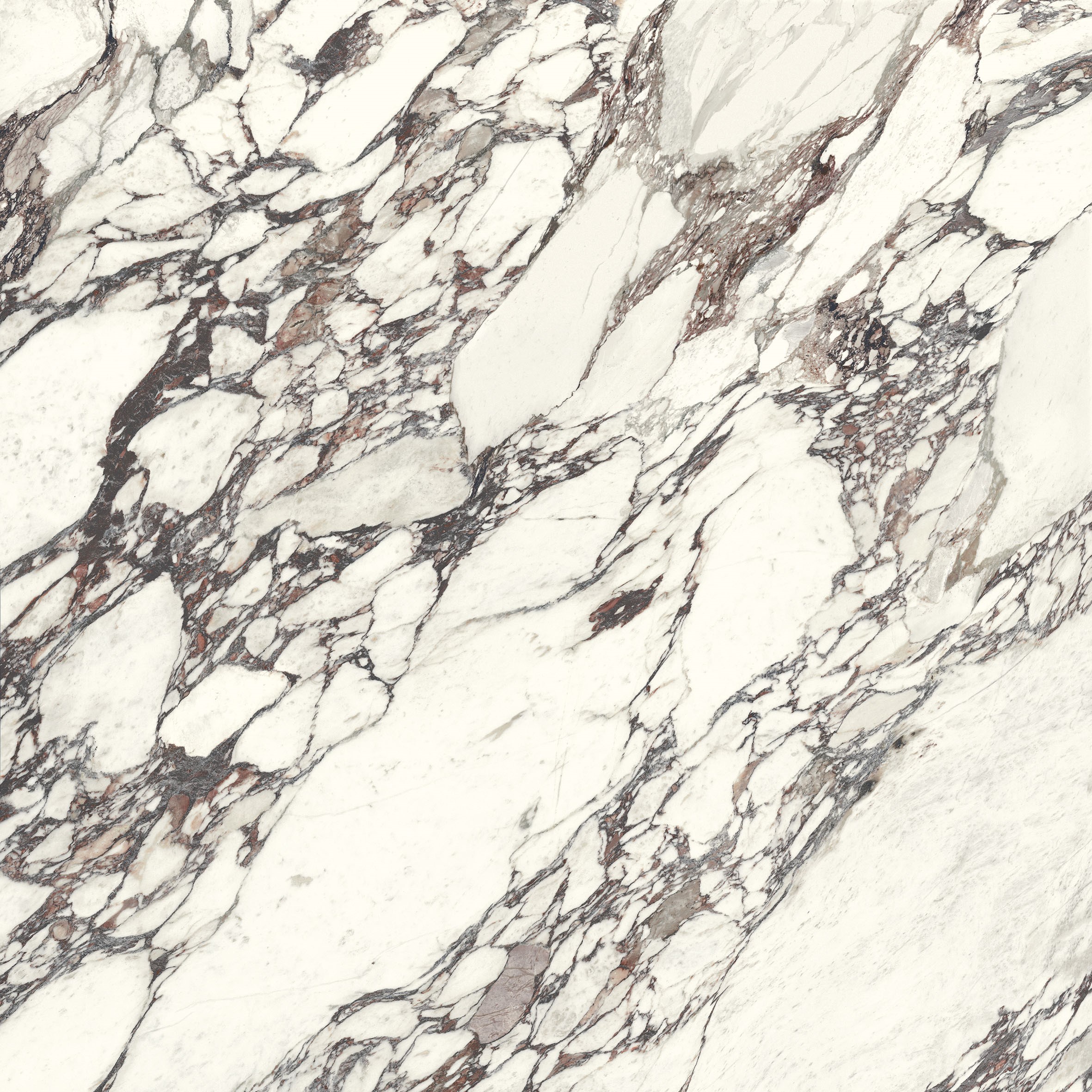 A dramatic interplay of rich burgundy and deep plum veining set elegantly against the crisp white background. The bold, flowing patterns give it a luxurious marble like appearance, ideal for creating statement surfaces with timeless elegance and modern edge.