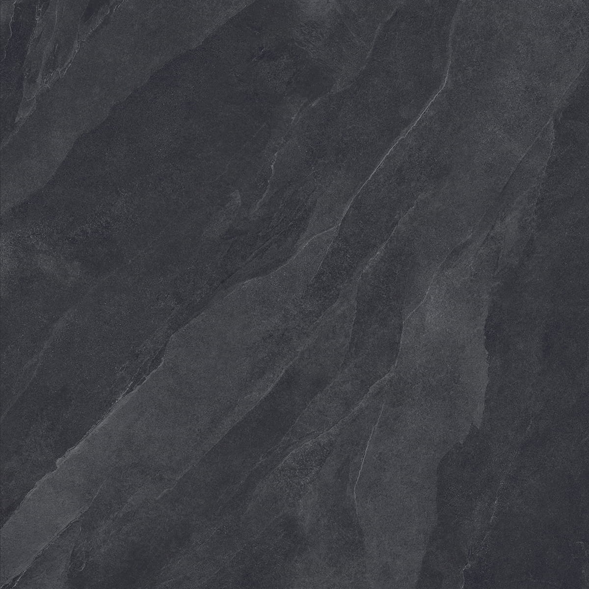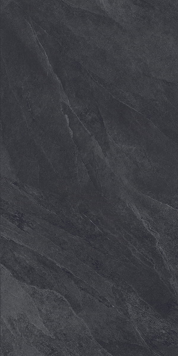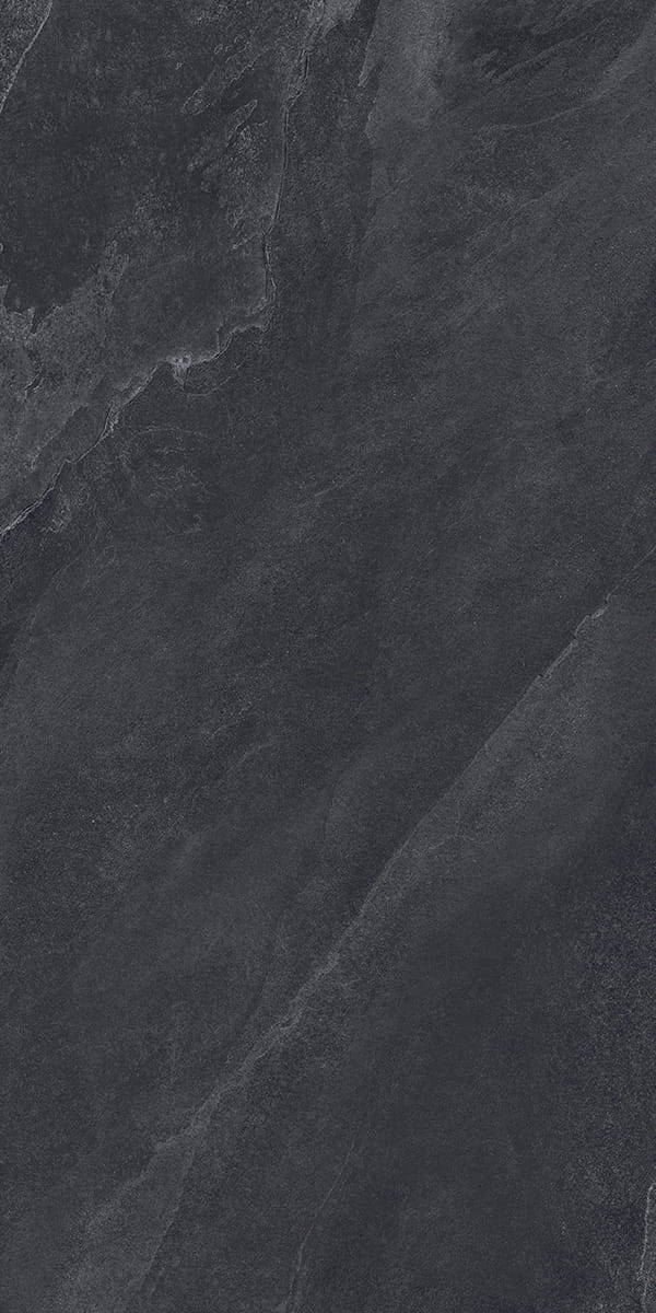 Rich charcoal and graphite tones unfold through soft, layered movement, creating a surface defined by depth and subtle texture. Inspired by natural stone, its restrained palette brings a bold yet calm presence, ideal for spaces seeking balance, atmosphere, and timeless elegance.