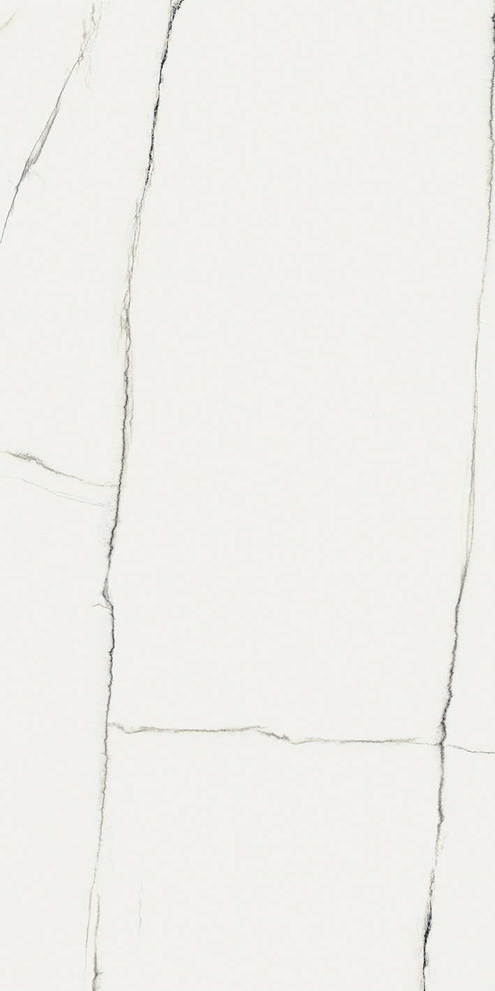 A luminous warm white field traced with fine, linear veining in soft grey and nuanced taupe. The subtle movement evoke the quiet elegance of natural quartzite, offering a contemporary and balanced aesthetic for large format applications.