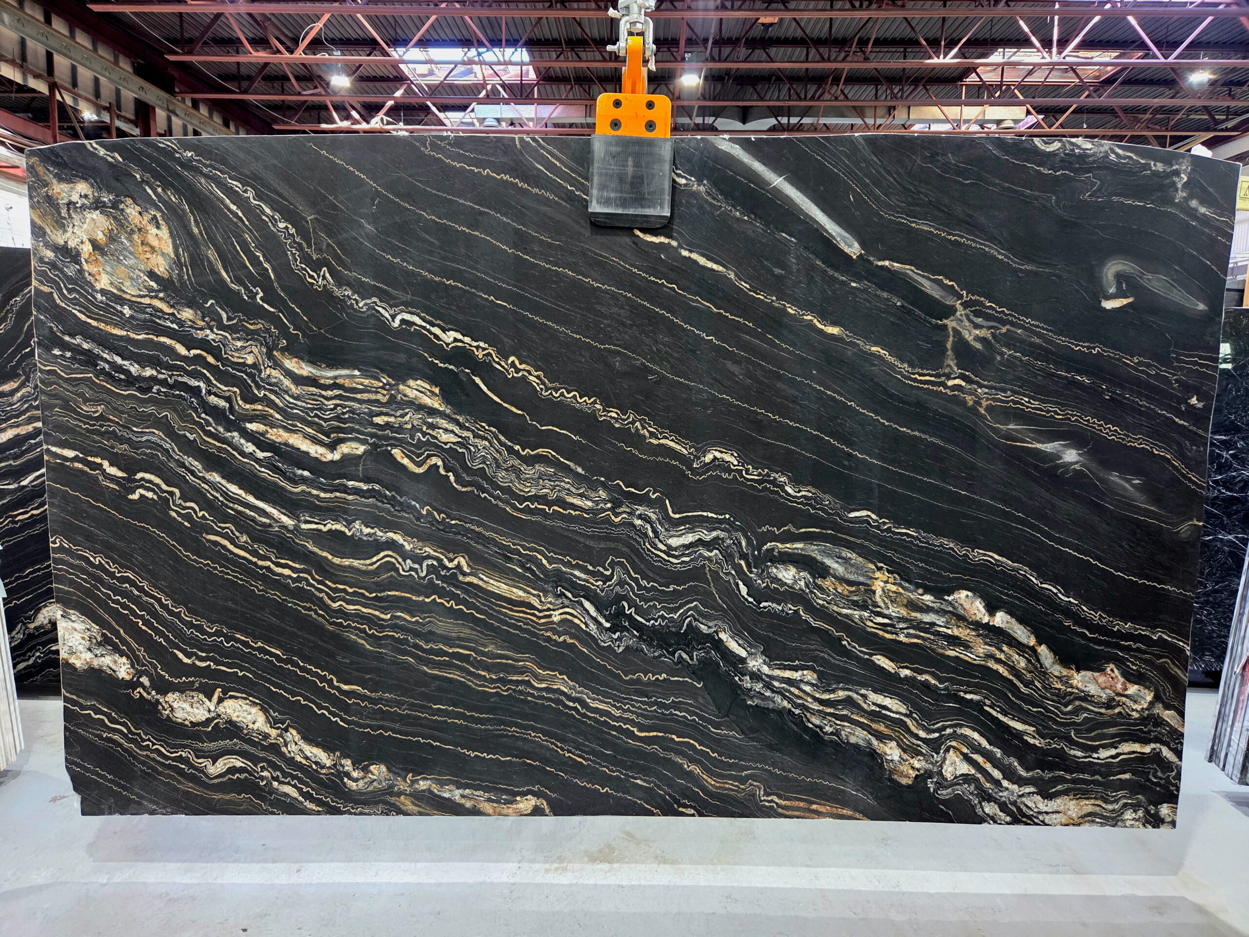 ![Portoro Quartzite features a dramatic black background layered with striking gold and ivory veining. This leathered natural stone adds bold movement, depth, and luxurious contrast to high end interiors. Quartzite Portoro - Lot 2615 2cm Leathered, 123" x 72" [Slab #21] | Arena Stone NJ Arena stone nj quartzite portoro lot 2615 2cm leathered quartzite portoro lot 2615 2cm leathered 123 x 72 slab 21](https://arenastonenj.com/wp-content/uploads/Quartzite-Portoro-Lot-2615-2cm-Leathered-123x72-Slab-21-scaled.jpg)