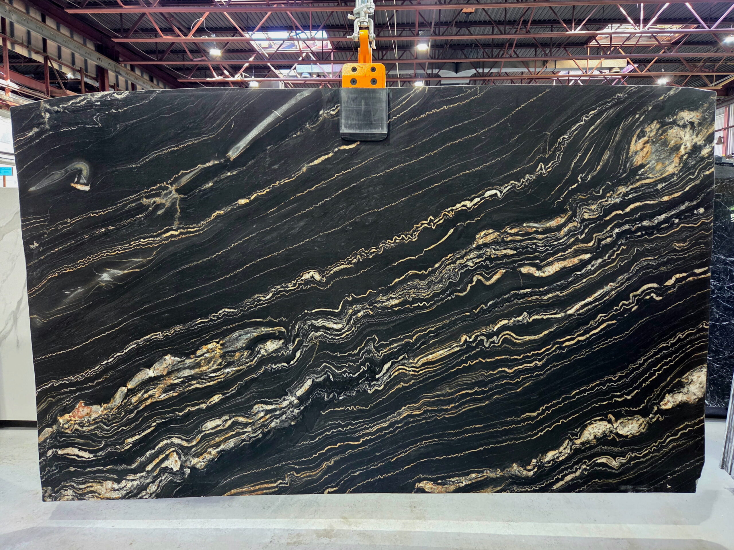 ![Portoro Quartzite features a dramatic black background layered with striking gold and ivory veining. This leathered natural stone adds bold movement, depth, and luxurious contrast to high end interiors. Quartzite Portoro - Lot 2615 2cm Leathered, 123" x 72" [Slab #22] | Arena Stone NJ Arena stone nj quartzite portoro lot 2615 2cm leathered quartzite portoro lot 2615 2cm leathered 123 x 72 slab 22](https://arenastonenj.com/wp-content/uploads/Quartzite-Portoro-Lot-2615-2cm-Leathered-123x72-Slab-22-scaled.jpg)