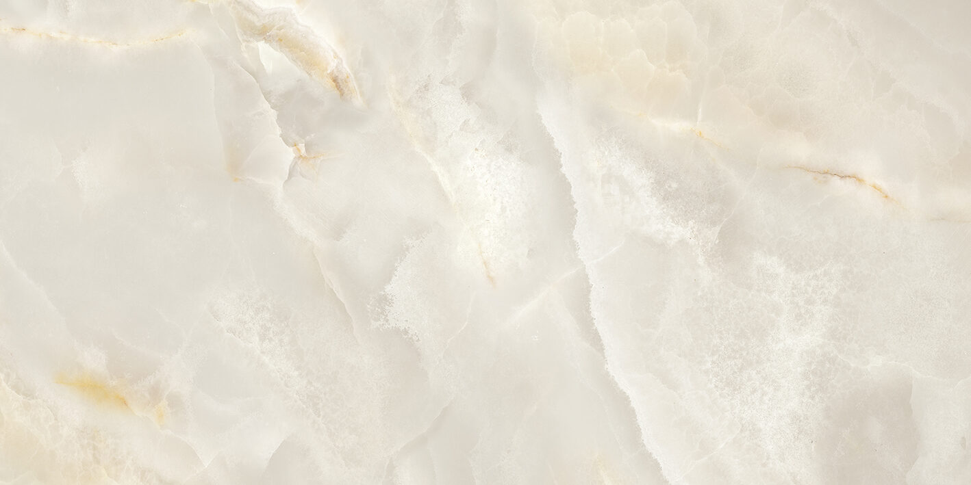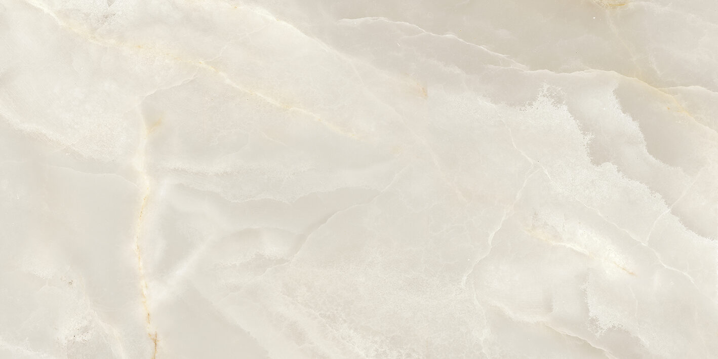 A soft, pearlescent ivory base is enriched with creamy undertones and gentle white clouding. Subtle amber and golden veining flow organically across the surface, adding warmth and depth to its luminous appearance. Ideal for creating an elegant and serene aesthetic.